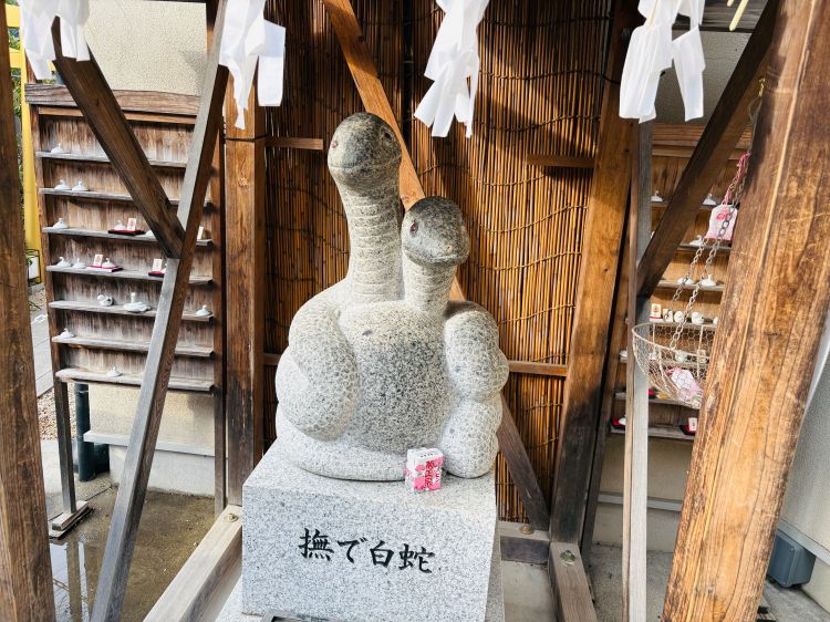 撫で白蛇は夫婦の白蛇様の像で、願いを唱えながら撫でると、その願いを叶えてくれると言われています。