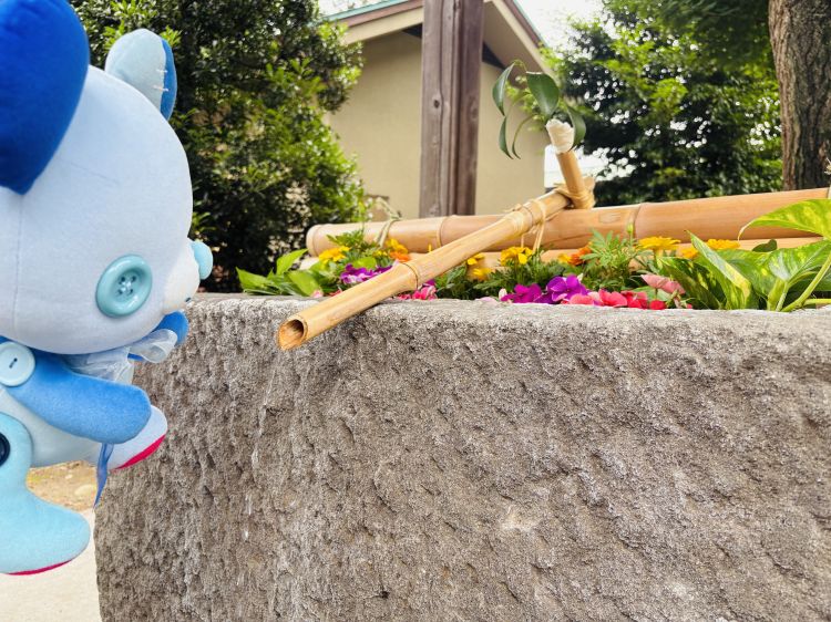 こちらであおいくまくんと共に手を清め、参拝へと向かいます。
