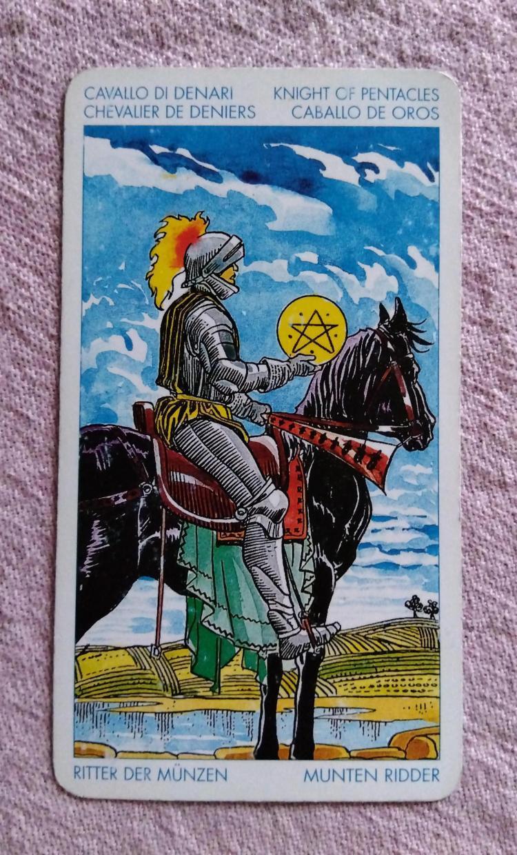 「ペンタクルのナイト」の正位置。