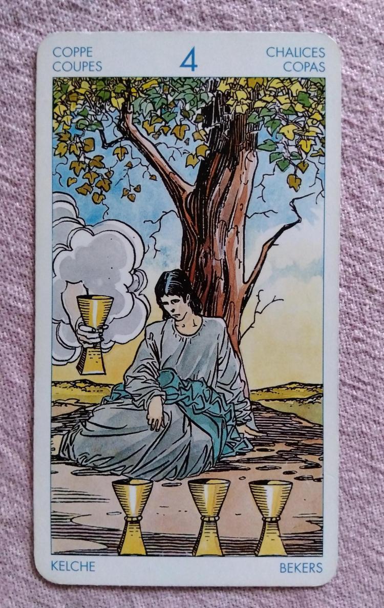 「カップの4」の正位置。