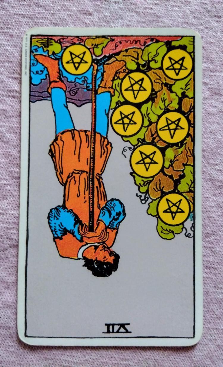 「ペンタクルの7」の逆位置。