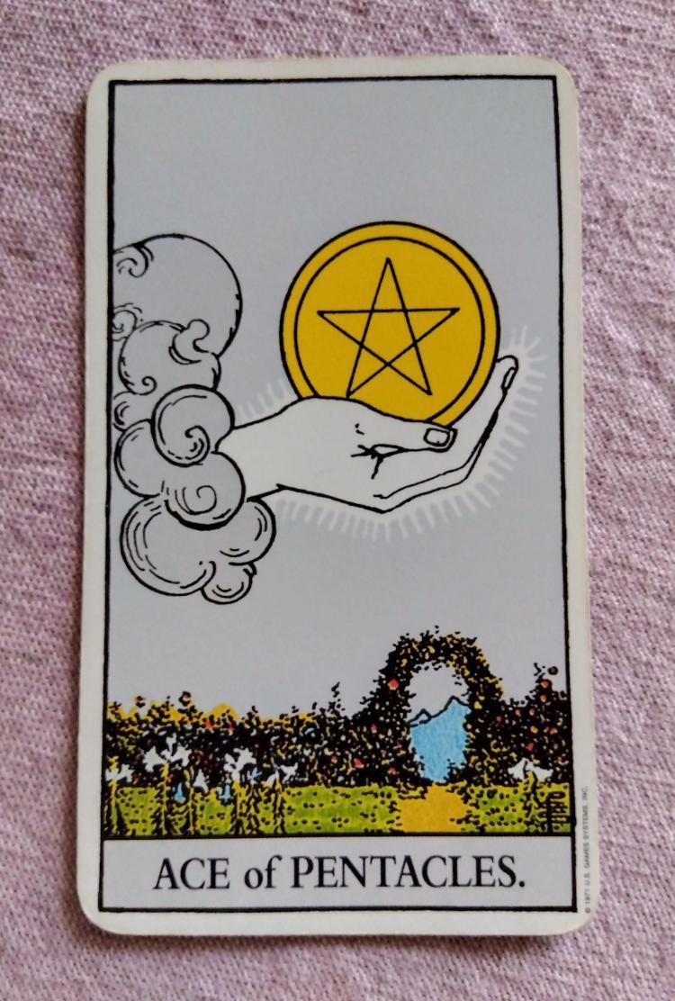「ペンタクルのエース」の正位置。