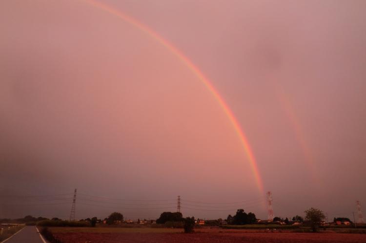 先日の夕方、東の空に大きなツインレインボーが出ました。
