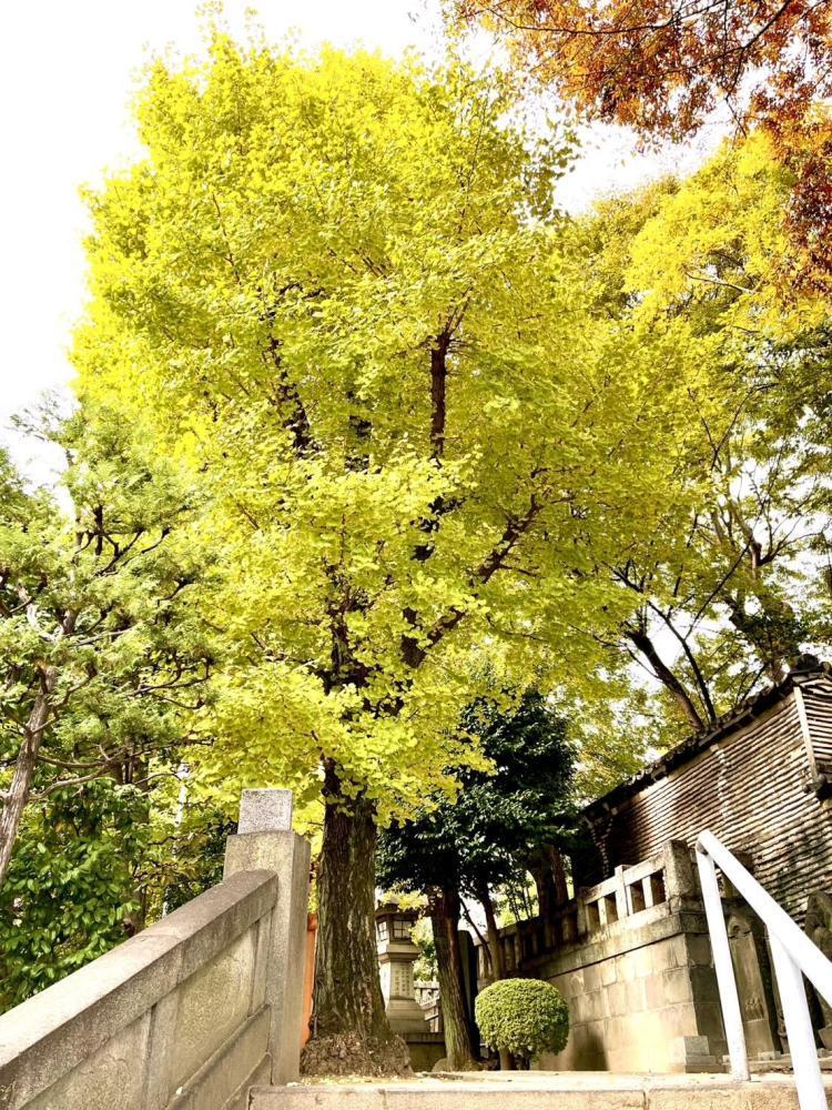 紅葉したイチョウの木は、金運アップの象徴でもあるそうです。そうそう!雌の株からは銀杏(ギンナン)も実りますね。