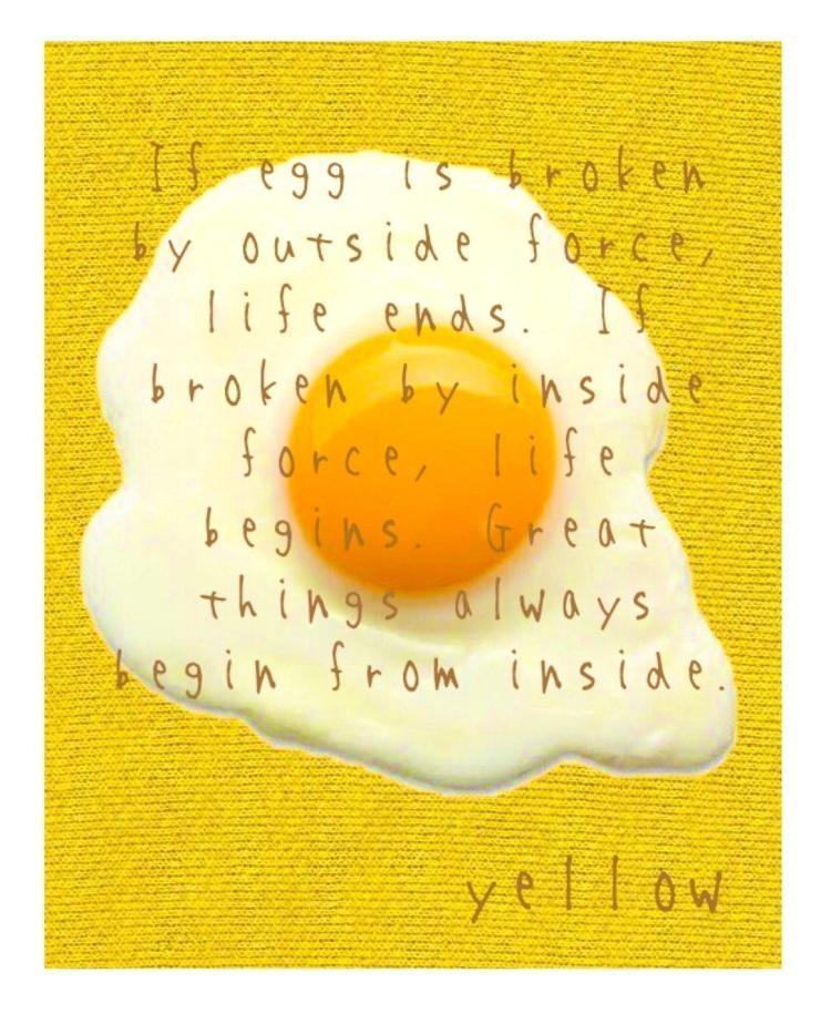黄色をイメージさせるものは色々とありましたが、是非アナタにこの名言をお届けしたく、卵をチョイスさせて頂きました。