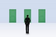 いくつかのドアがある前で…
