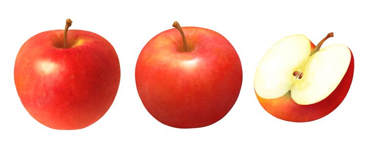 赤いリンゴを用意し、真ん中から横に切ります。種を取り出し、5つ選びます。