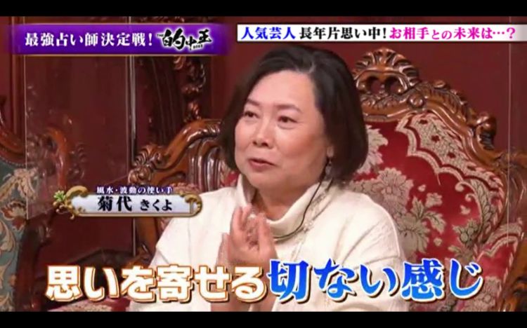 雑誌Rayでの企画を担当されたり、テレビ番組「THE 的中王」に出演するなど、様々なメディアでの活躍実績を持つ実力派の占い師の菊代(きくよ)先生……!